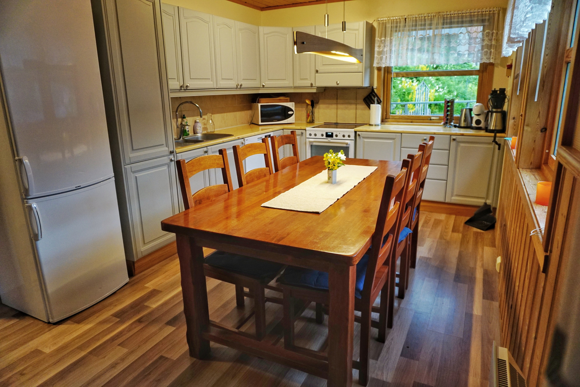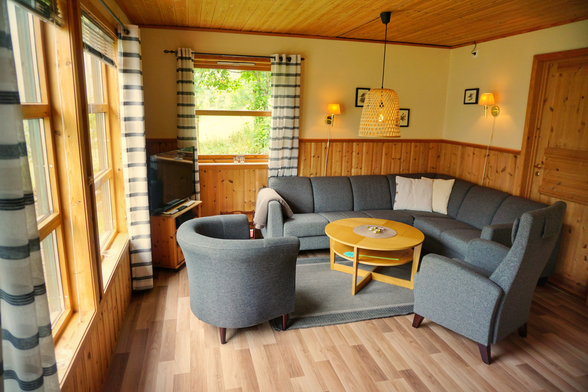 Die Hütte hat vier Schlafzimmer: zwei im Erdgeschoss und zwei im Obergeschoss. Insgesamt gibt es zwei Doppelbetten in getrennten Räumen, ein Zimmer mit zwei Einzelbetten und ein großes Schlafzimmer mit vier Einzelbetten. Sie können die Einzelbetten nach Belieben verschieben.