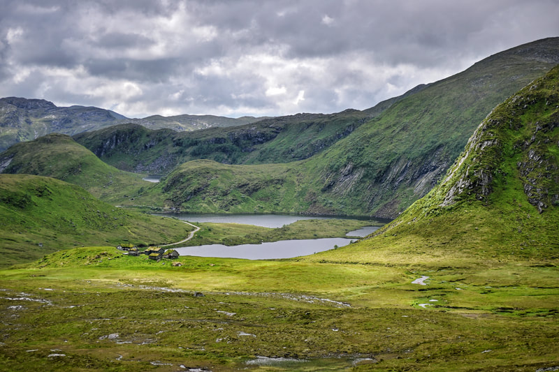 Mit dem Auto können Sie bis in die Berge an der Westseite des Indre Dalsfjords fahren. Hier erreichen Sie auf etwa 700 Metern Höhe einen Ort, an dem viele Einheimische kleine Hütten besitzen. Die kurvenreiche Straße wurde in den 1970er Jahren im Zuge des Baus eines Wasserkraftwerks (Åmela kraftverk) gebaut.