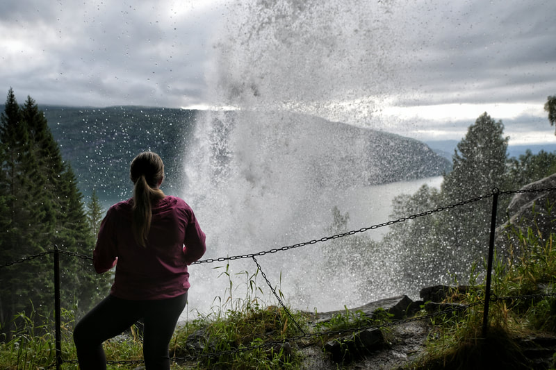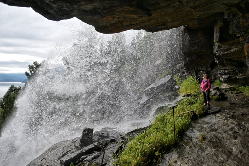 Auf dem Rückweg sollten Sie unbedingt den Tvinnefossen besuchen – einen Wasserfall, hinter dem Sie hindurchgehen können!