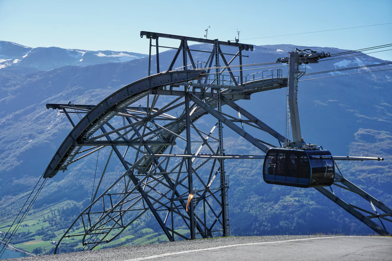 Eines der ersten Dinge, die Sie bei Ihrer Ankunft in Loen sehen werden, ist der Skylift – eine der steilsten Seilbahnen der Welt. Sie bringt Sie in wenigen Minuten vom Meeresspiegel auf den Gipfel des Berges Hoven (1.011 Meter über dem Meeresspiegel).