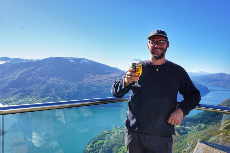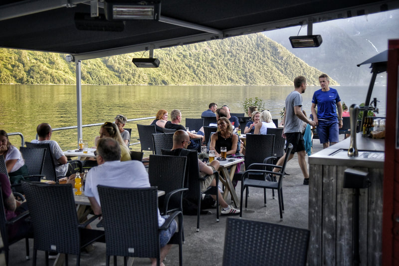 Es lohnt sich, auf ein Bier oder ein Erfrischungsgetränk anzuhalten und den spektakulären Blick auf den Berg Stålberghornet (1285 Meter) auf der gegenüberliegenden Seite des Fjords zu genießen.