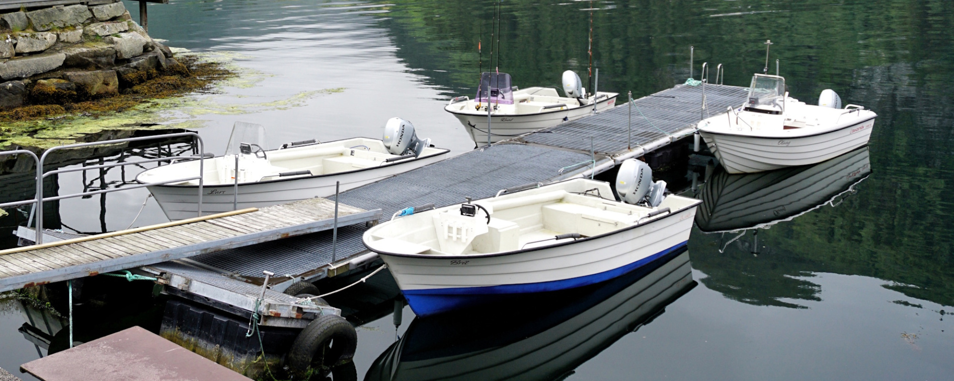 Unten am Meer finden Sie die private Marina von Steinsvik Fjordhytter. Hier befindet sich auch ein kleines Häuschen, wo Sie den Fang des Tages reinigen können.